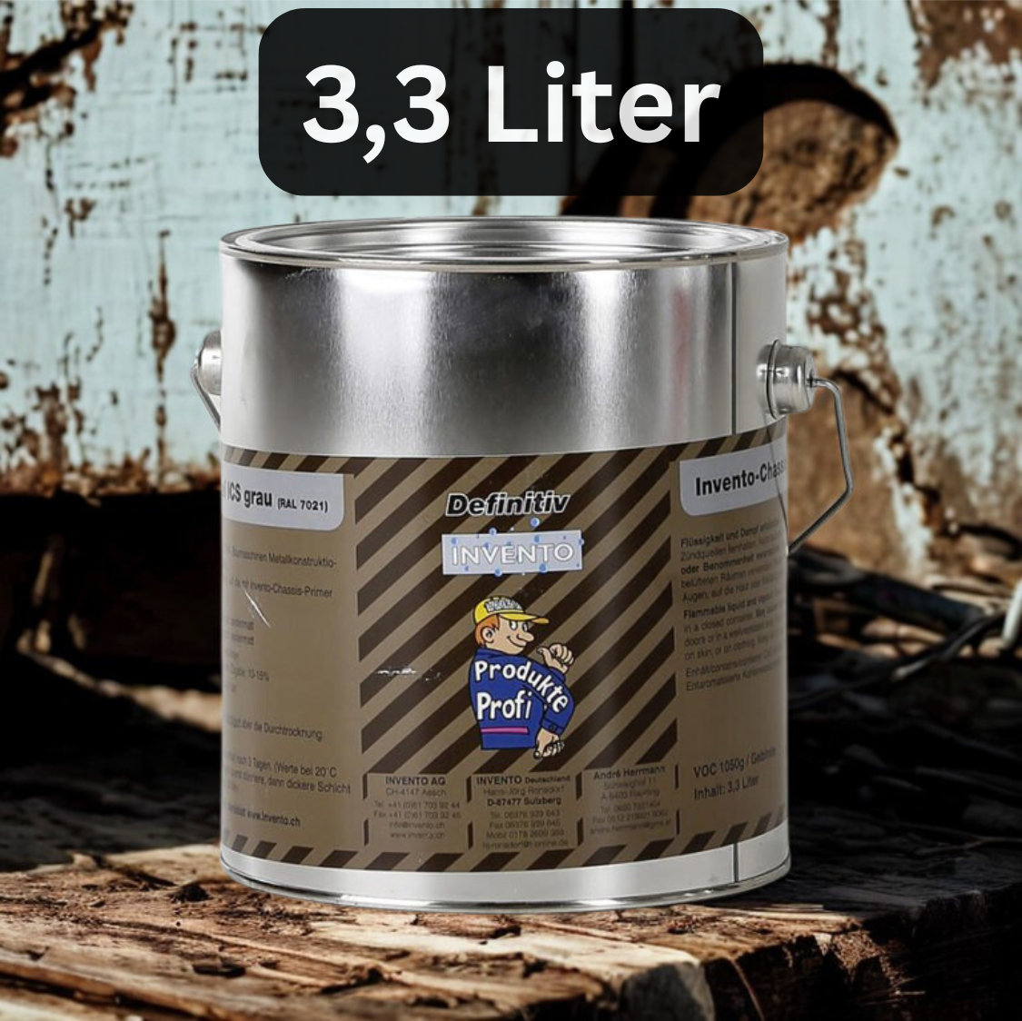 Invento Chassi Siegel ist eine thermoplastische Korrosionsschutzbeschichtung und wird als Endschicht auf den Invento Chassi Primer aufgetragen. Mit nur einem Spritzgang (Becherpistole) wird eine Trockenschichtstärke von ca. 100 Mikron erreicht. Diese Endbeschichtung ist gleichermaßen wie Invento Chassi Primer ein LOW VOC Produkt und darf in Räumen ohne Abluftanlage verarbeitet werden.